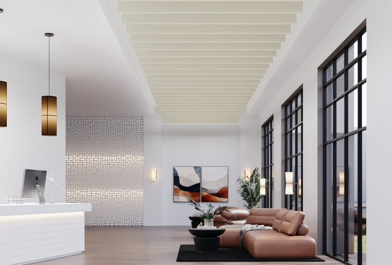 Helps make the space quieter by minimizing unwanted sound reflections and improving acoustics.